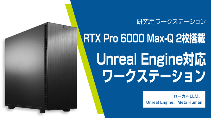 ホーム > 研究開発用PC 構成事例 (テグシス) > RTX Pro 6000 Max-Q 2枚搭載 Unreal Engine対応ワークステーション